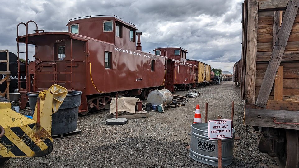 Not exactly sure, but this appears to be a Northern Pacific Railway caboose from the mid-20th century, identifiable by the "NORTHERN PACIFIC" lettering, along with its characteristic reddish-brown paint scheme. This caboose features typical design elements of that era, including a cupola for crew visibility, multiple observation windows, and steel construction. These cabooses served as mobile offices for conductors and brakemen who monitored freight trains from the rear and operated manual brakes when necessary. The Northern Pacific Railway operated from 1864 to 1970, connecting the Great Lakes to the Pacific Northwest. In general, cabooses were commonly used on freight trains until the 1980s, when end-of-train devices made traditional cabooses obsolete.